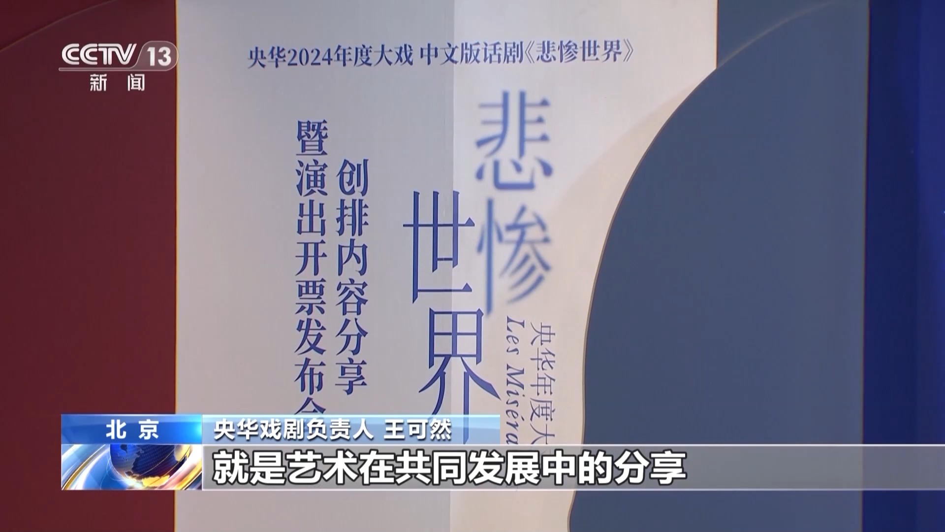 央华戏剧负责人 王可然:全世界在《悲惨世界》这个项目上主要流传的,主要演绎的,主要在舞台上呈现的几乎都是音乐剧。音乐剧有音乐剧的优势,但是话剧会更加丰富地表达原著。中方和法方艺术家的联合创作,就是艺术在共同发展中的分享和共同的进步。