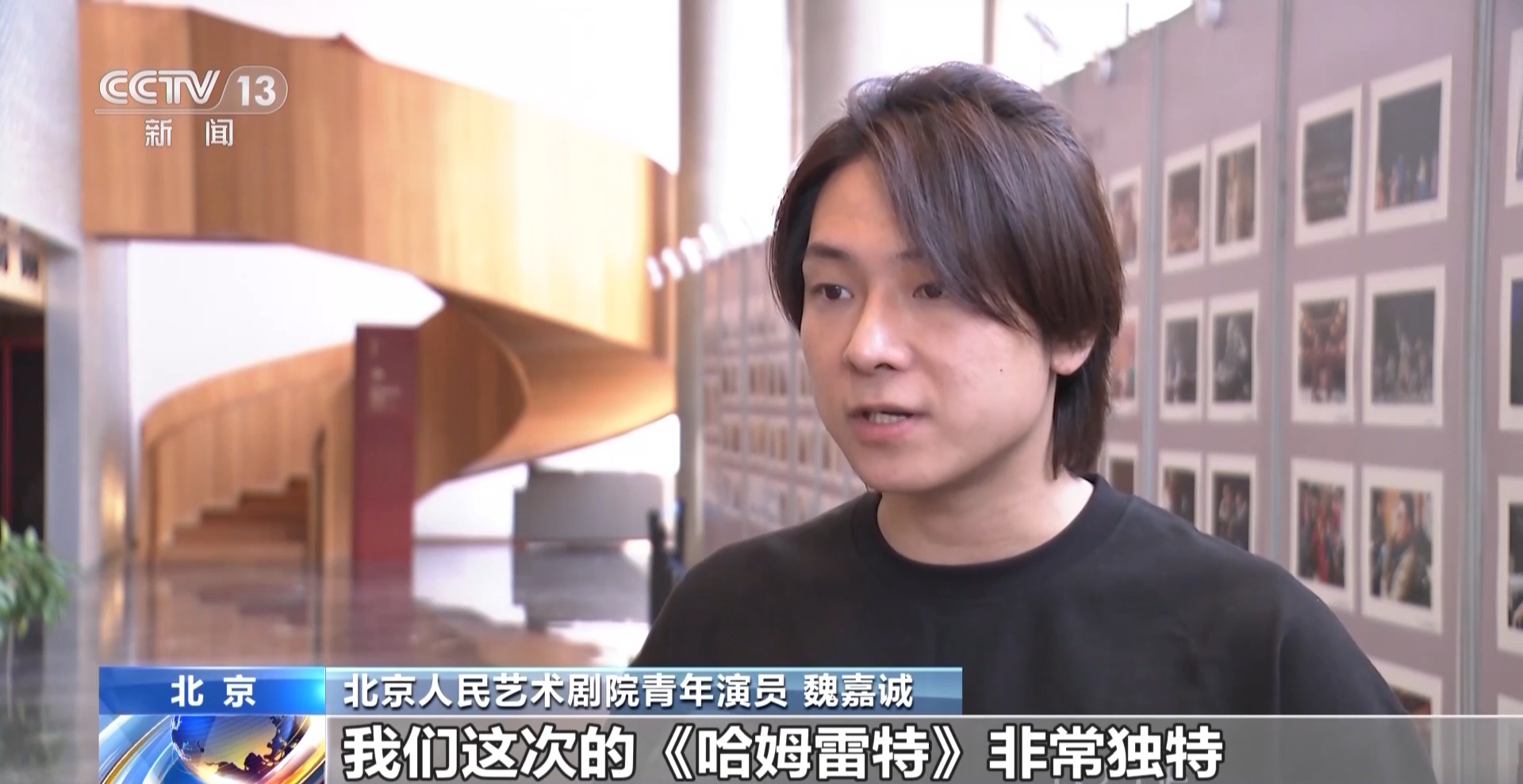 北京人民艺术剧院青年演员 魏嘉诚:我们这次的《哈姆雷特》非常独特,首先是小剧场演出,《哈姆雷特》是一个大体量的,超多人数的一个大戏,我们用4个演员去演了一个30个角色的戏,所以我们在很多地方上有自己的编排、创作。
