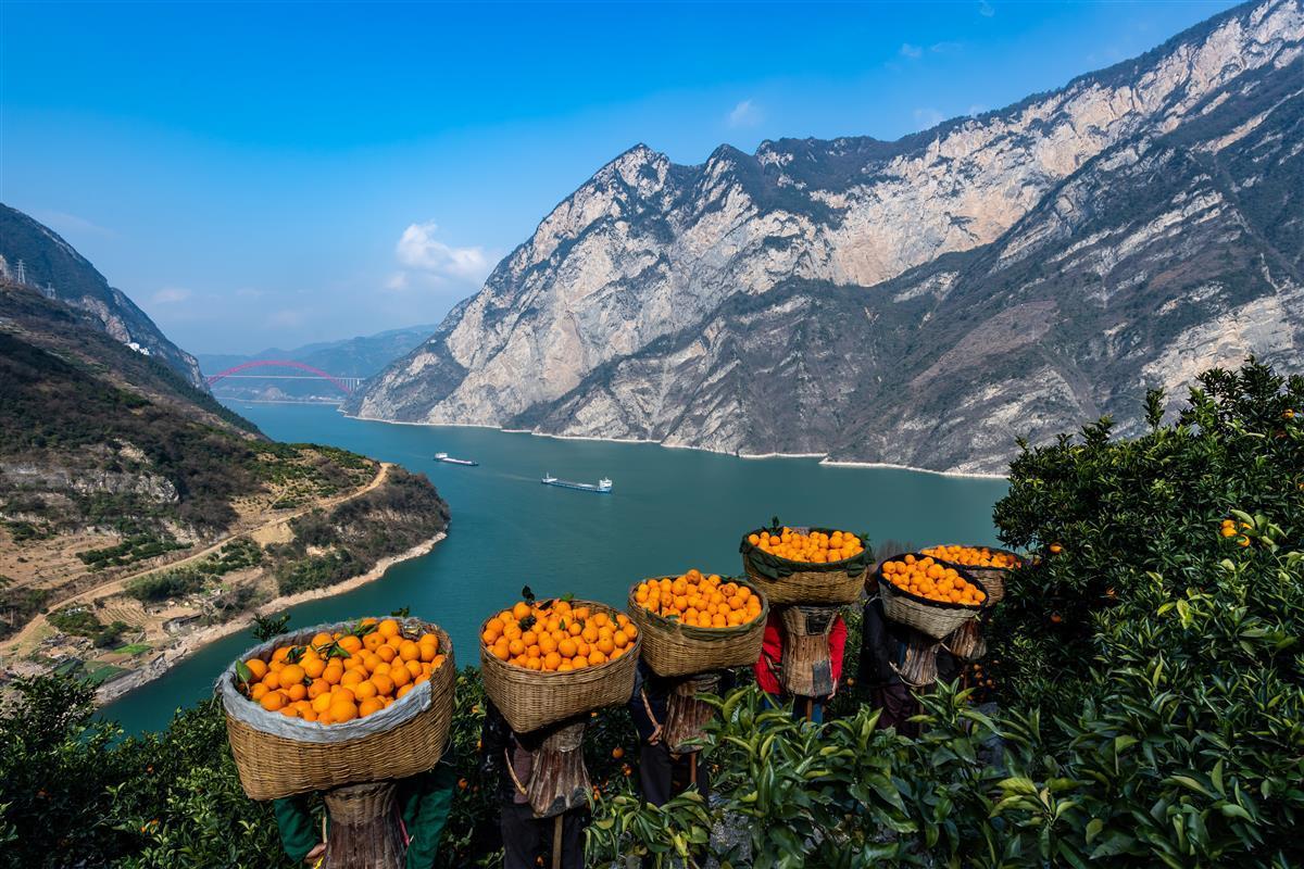峰峦叠嶂,壁立峡江。位于长江三峡西陵峡段的秭归县,是“中国脐橙之乡”,柑橘是这里的农业支柱产业。全县种植面积40万亩,社会产能突破100万吨,全产业链综合产值接近200亿元,涌现12个亿元村,带动26万人稳定增收。