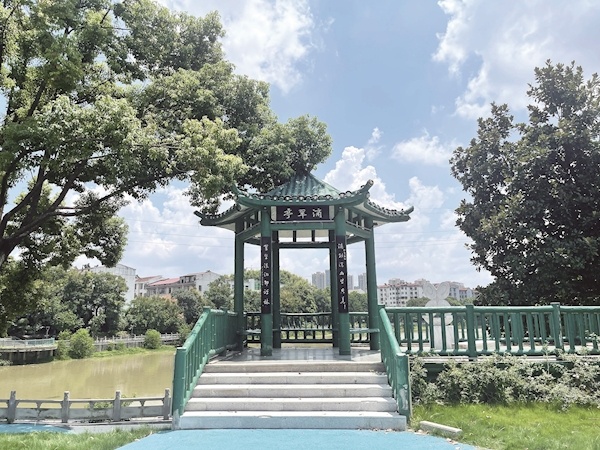 在丹桂桥的桥头桥尾还新修有“口袋公园”,干净整洁的沥青步道、雅趣别致的亭子、生机盎然的绿植……与丹桂桥交相辉映。