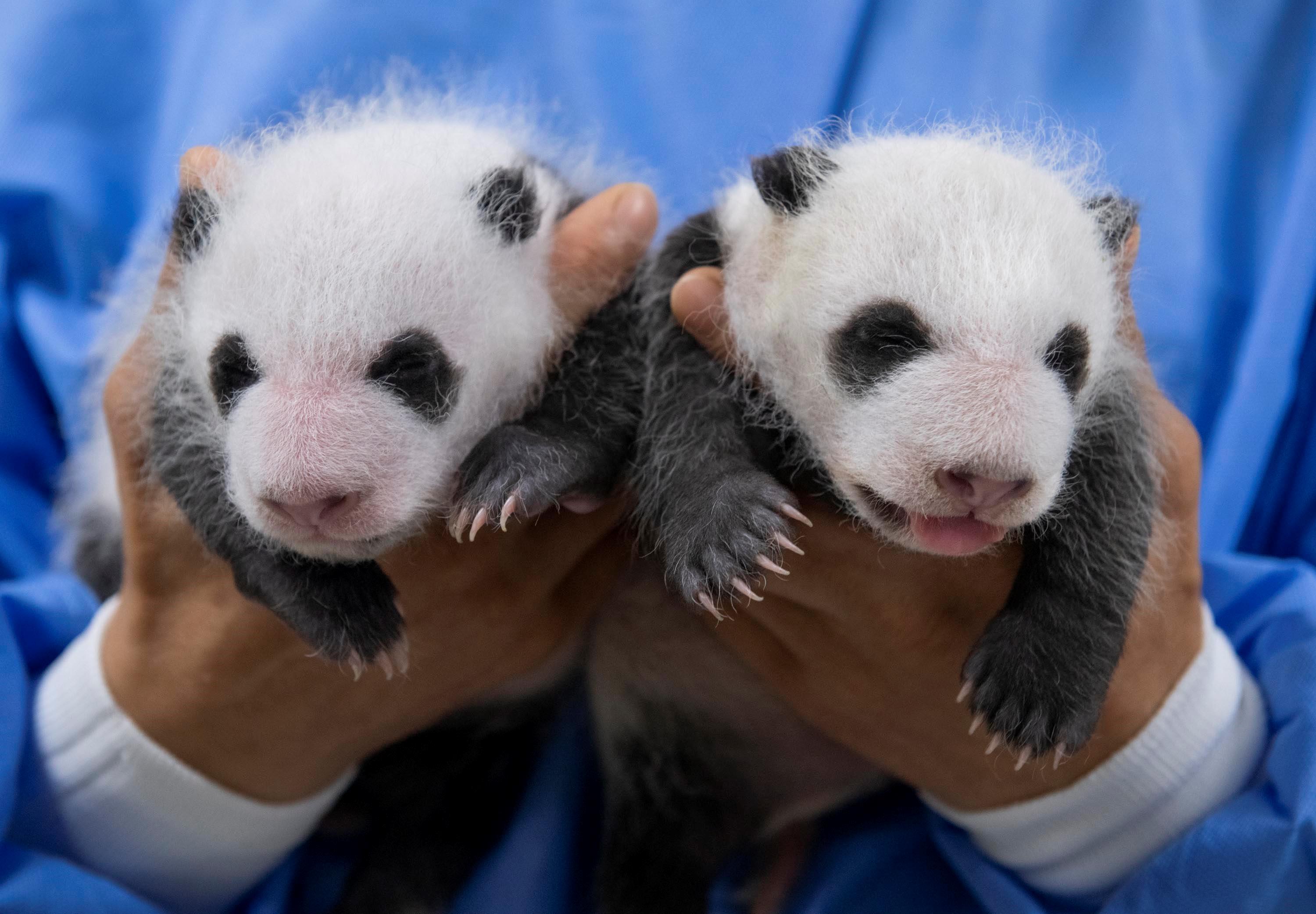 旅韩大熊猫夫妇乐宝、爱宝的二胎双胞胎宝宝8月7日迎来了满月。乐宝、爱宝一家旅居的爱宝乐园当天公开了双胞胎大熊猫宝宝的满月照,这对双胞胎姐妹的体重已经分别从180克长到1.1公斤、140克长到1.2公斤。