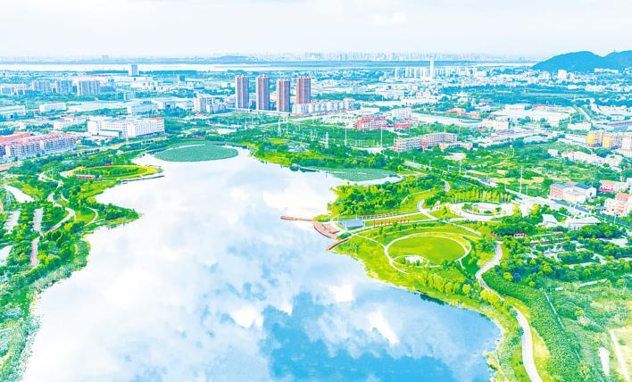 青天湖综合治理总投资3.98亿元,一期项目竣工后,周边地块的经济价值渐显。眼下,鄂城区滨江科技新区青天湖片区重大项目建设正酣。这一片区域瞄准“打造科创集聚区”目标,相继引进总部经济、光电子、新能源新材料等“高含绿量”项目58个。