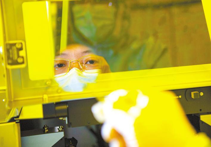 5月24日,中国信科光迅科技芯片研发实验室,赵建宜正进行可调谐激光器芯片测试。
