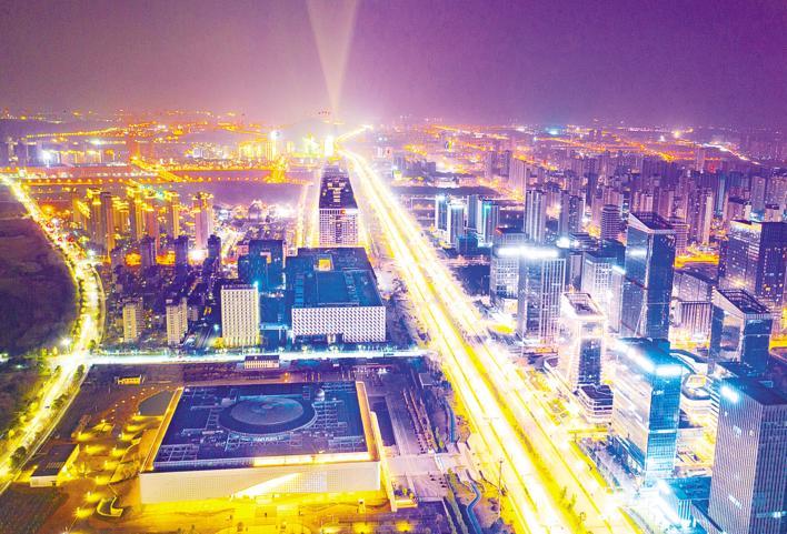 夜幕降临,武汉东湖高新区高新大道沿线,星河璀璨。