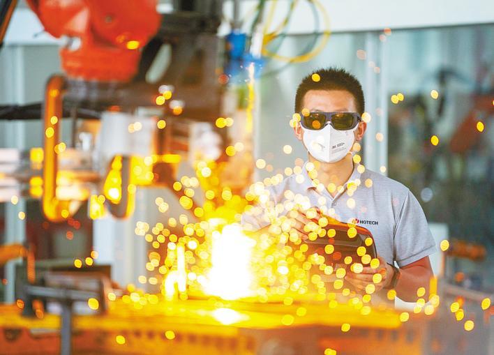 6月6日,武汉华工激光工程有限责任公司激光加工工艺中试平台,毕业于武汉大学的工程师曾爽在测试大功率激光焊接设备。