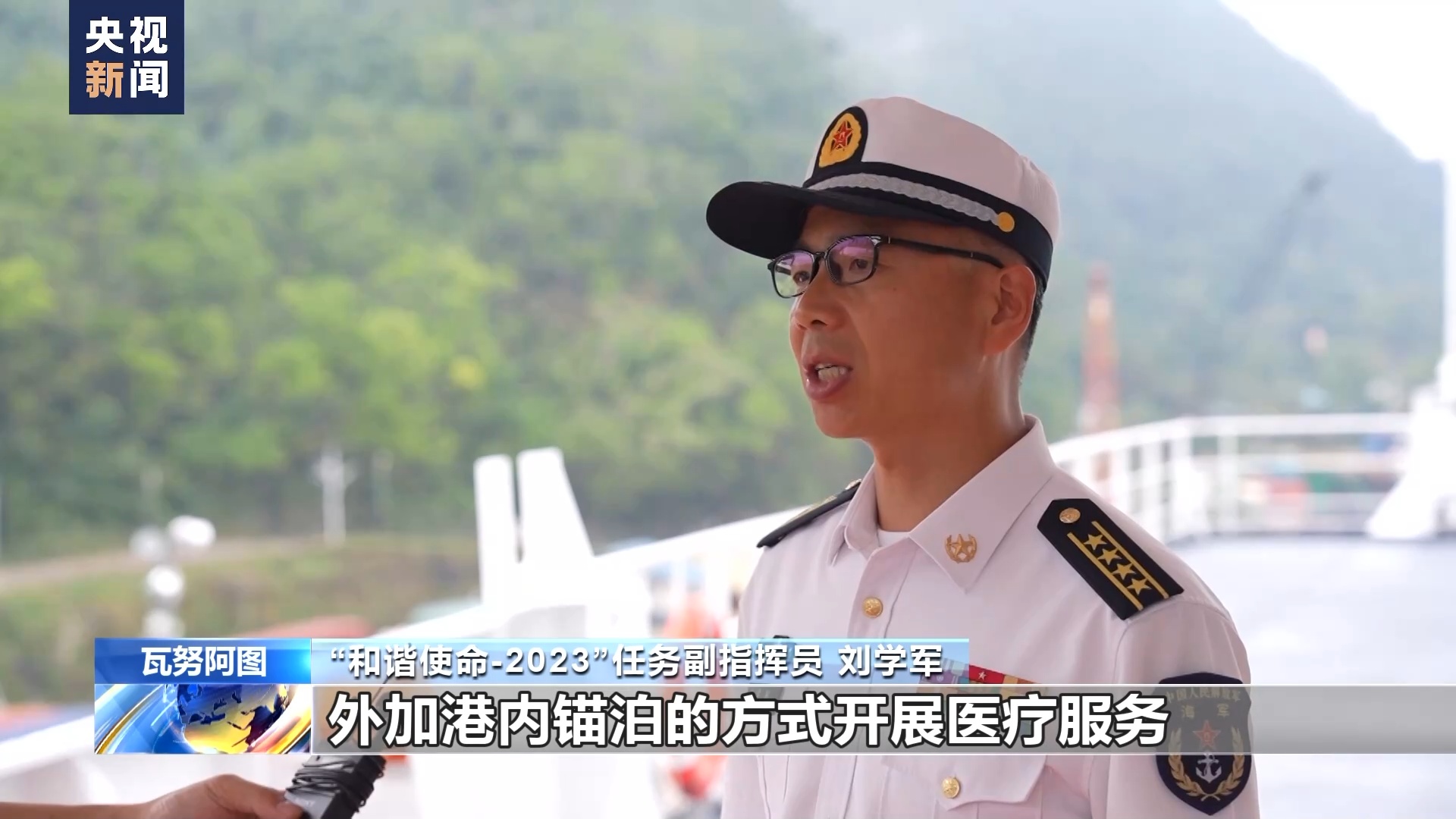 “和谐使命-2023”任务副指挥员 刘学军:此次瓦努阿图之行,根据靠泊条件,我们将采取码头靠泊外加港内锚泊的方式开展医疗服务。锚泊期间,通过船载登陆艇转运患者前往主平台进行诊疗。同时,我们将派出多支分队前往当地医院、乡村、社区,让更多民众享受到中国军医的优质医疗服务,进一步加深两国人民的了解,促进中瓦友谊。