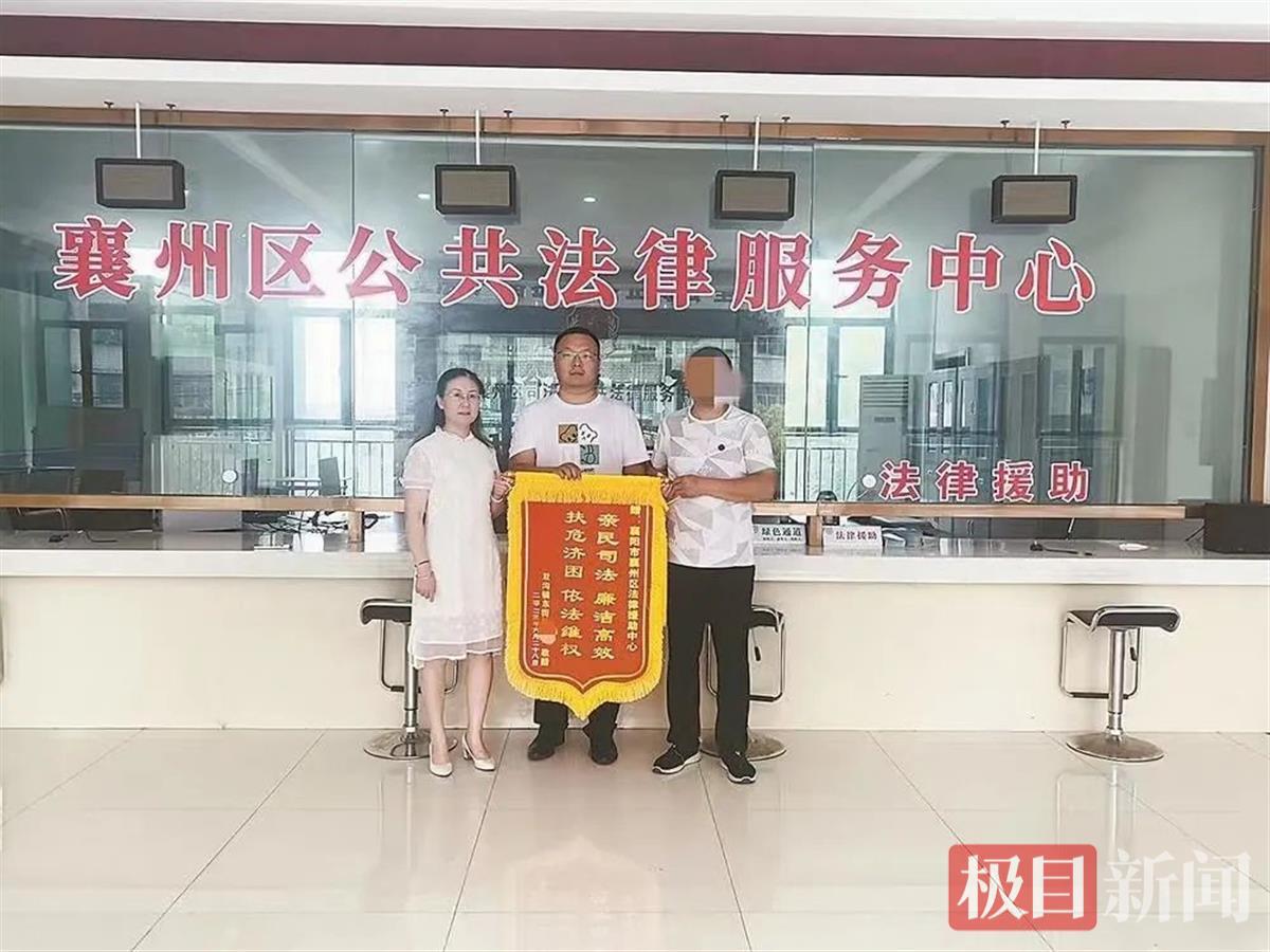 杜某(右)送锦旗感谢法援律师(图片来源:襄阳司法)