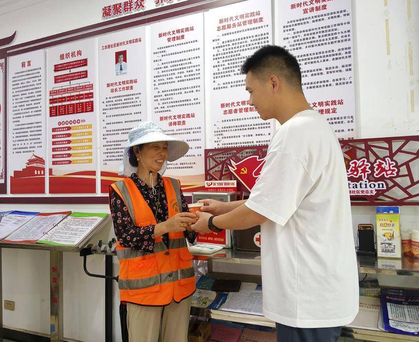炎炎夏日,环卫工人在“贴心驿站”享用免费冷饮
