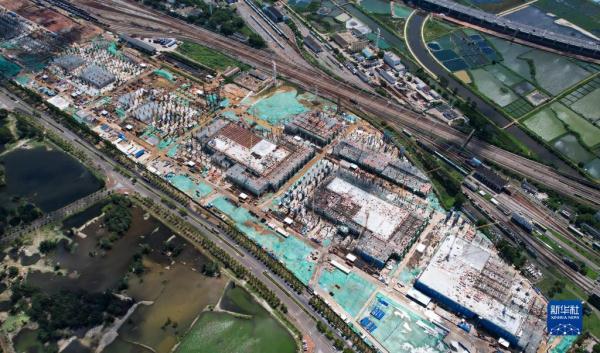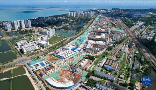 建设中的海口新海港和南港“二线口岸”(客运)客运查验设施、设备建设项目(无人机照片,8月4日摄)。