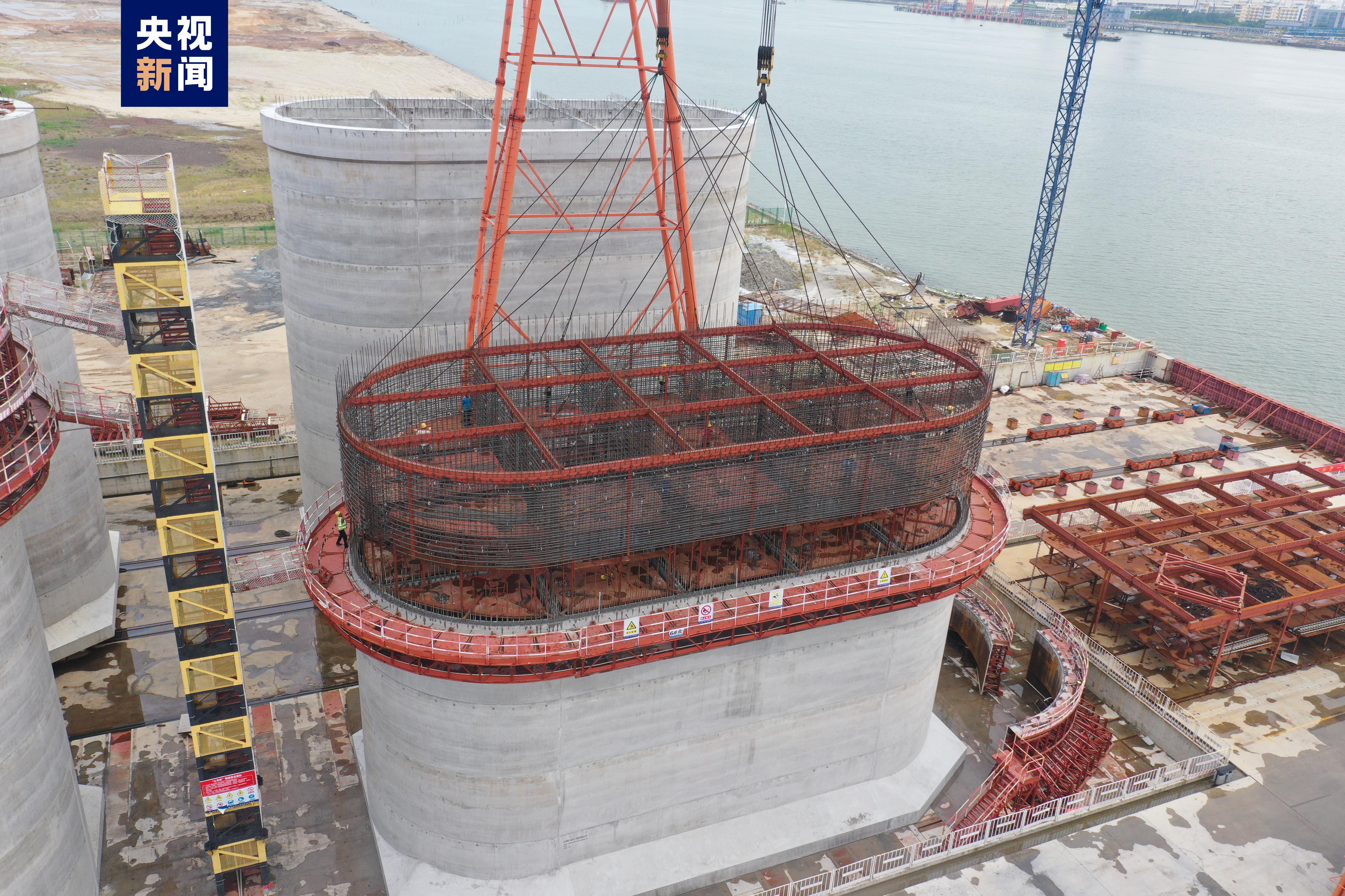 赤沙作业区1号、2号泊位是广西北部湾港首个30万吨级自动化干散货码头,混凝土构件结构复杂,数量多,种类多,重量大,全部在陆上预制场进行预制,施工难度巨大。预制混凝土构件共1201件,混凝土方量达10.2万m³,钢筋总量达2.05万吨。其中,单个沉箱重达5200多吨,体量创下北部湾港历史新高。