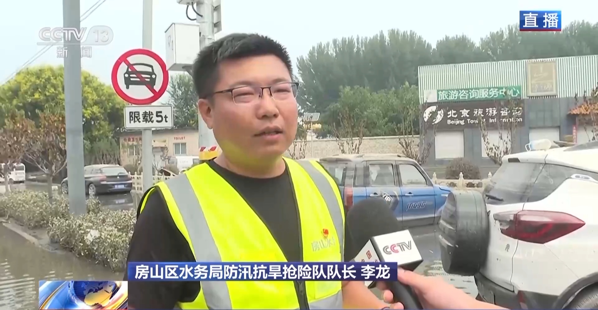 房山区水务局防汛抗旱抢险队队长 李龙:琉璃河环岛属于附近最低点,因为现在排水管道都被淤泥堵死,自然排水已经排不了了。在没有强降雨等特殊情况下,还需要两天两夜的时间将环岛的水基本排出。