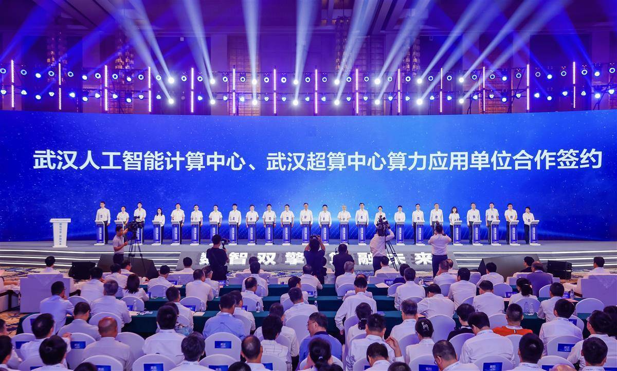 湖北科投党委委员、副总经理韩德章代表武汉人工智能计算中心、武汉超算中心(以下简称“双中心”)与23家算力应用合作单位进行合作签约。