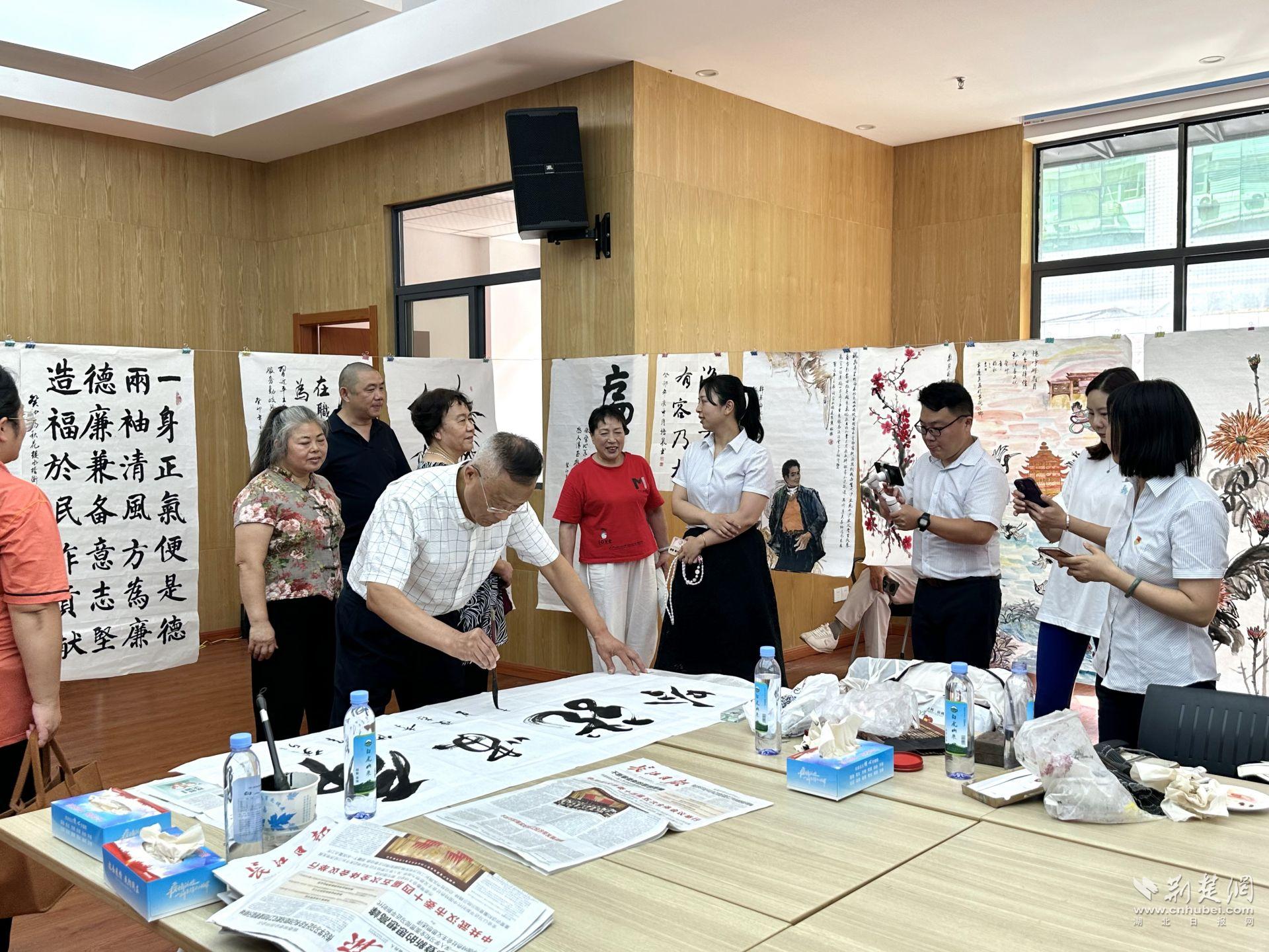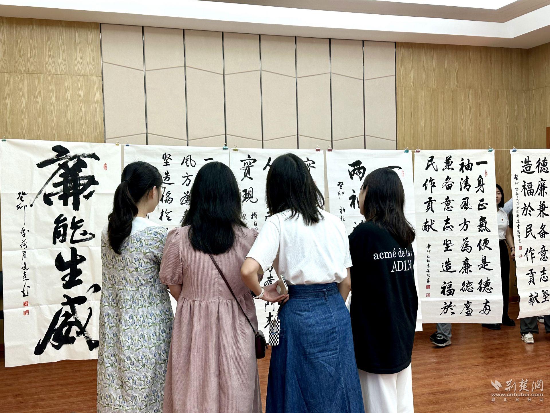 荆楚网(湖北日报网)讯(记者何婧 通讯员李爽 雷力嫣)“一身正气甘淡泊,两袖清风自安宁……这幅字写得真好啊!”“看这幅梅花图,把梅花傲然风雪的高洁风骨都表现出来了!”8月11日,江汉区花楼水塔街道举办“妙笔扬清风 丹青颂廉韵”清廉文化主题书画展,一幅幅主题突出、清新雅致的清廉文化主题书画作品有序陈列,现场观展的党员及居民代表们纷纷被作品中蕴含的浩然正气所感染。
