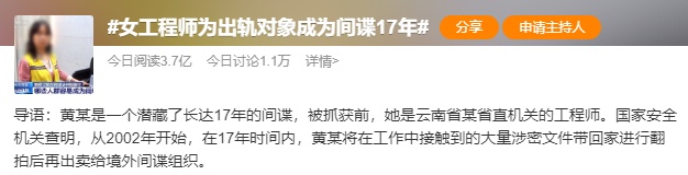 8月11日,“女工程师为出轨对象成为间谍17年”冲上微博热搜。