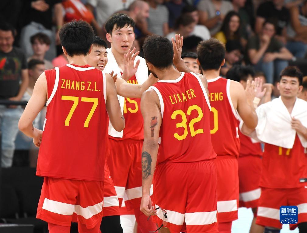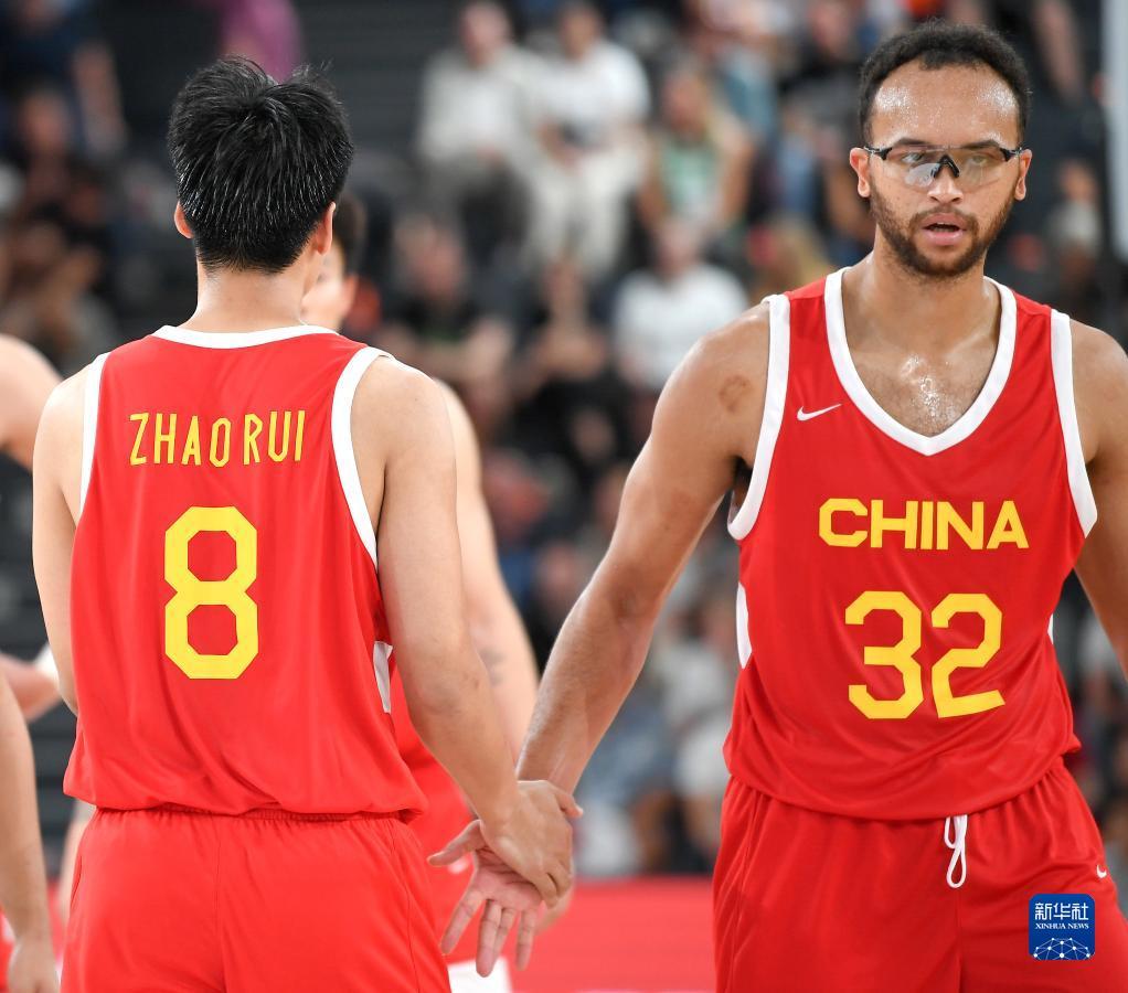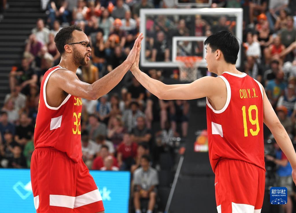 8月13日,中国队球员李凯尔(右)在比赛中与队友赵睿击掌。新华社记者 任鹏飞 摄