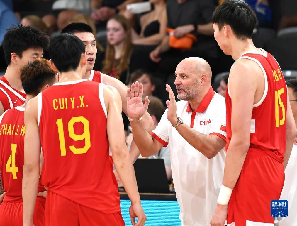 8月13日,中国队主教练乔尔杰维奇(左三)比赛间隙指导球员。新华社记者 任鹏飞 摄