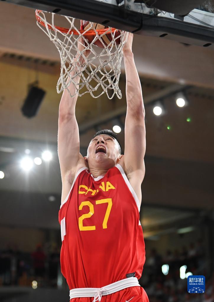8月13日,中国队球员付豪在比赛中扣篮。新华社记者 任鹏飞 摄