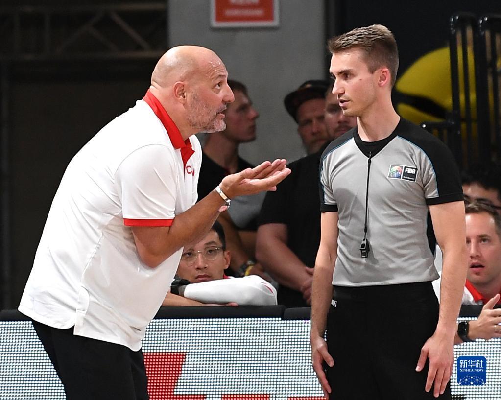 8月13日,中国队主教练乔尔杰维奇(左)在比赛中与裁判交流。新华社记者 任鹏飞 摄