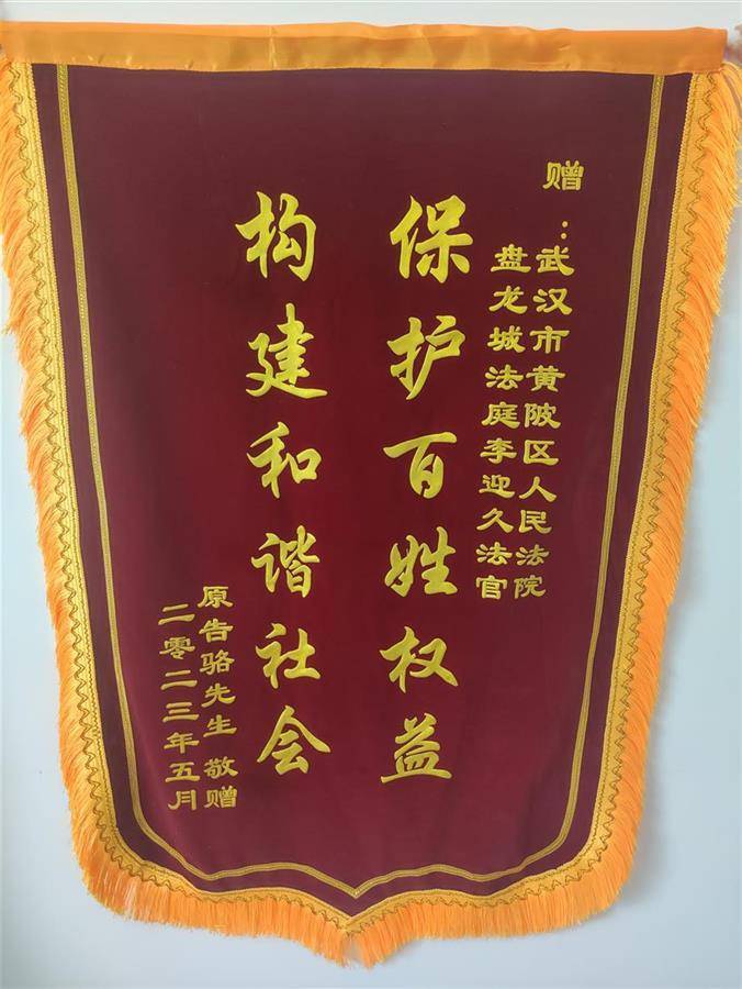 法庭判决解除合同,某科技公司返还骆某某15040元。判决生效后,骆某某从北京打电话询问如何申请强制执行。承办法官考虑到案件将由法庭执行且标的不大,因此没有简单告诉骆某某如何申请强制执行,而是让其耐心等待几天。在后续沟通过程中,承办法官在无法联系上被告公司负责人的情况下,通过与其诉讼代理人联系获得了该公司负责人某个亲戚的联系方式,了解到该公司已停止经营,公司负责人已于案件审理期间被刑事拘留。如果申请强制执行,短时间内该案很可能无法执行到位,当事人的合法权益得不到及时保护。承办法官最终说服该亲戚代公司负责人全部履行了案款。不久,法庭收到骆某某从北京寄来的锦旗,上书“保护百姓权益 构建和谐社会”。