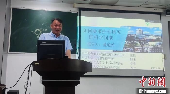 5月,台湾公共卫生博士董道兴在浙江台州作报告。 (受访者供图)
