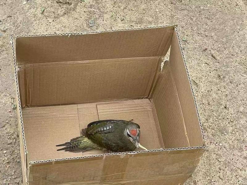 8月14日,枣阳市公安局杨垱派出所成功救助一只国家二级保护动物啄木鸟。