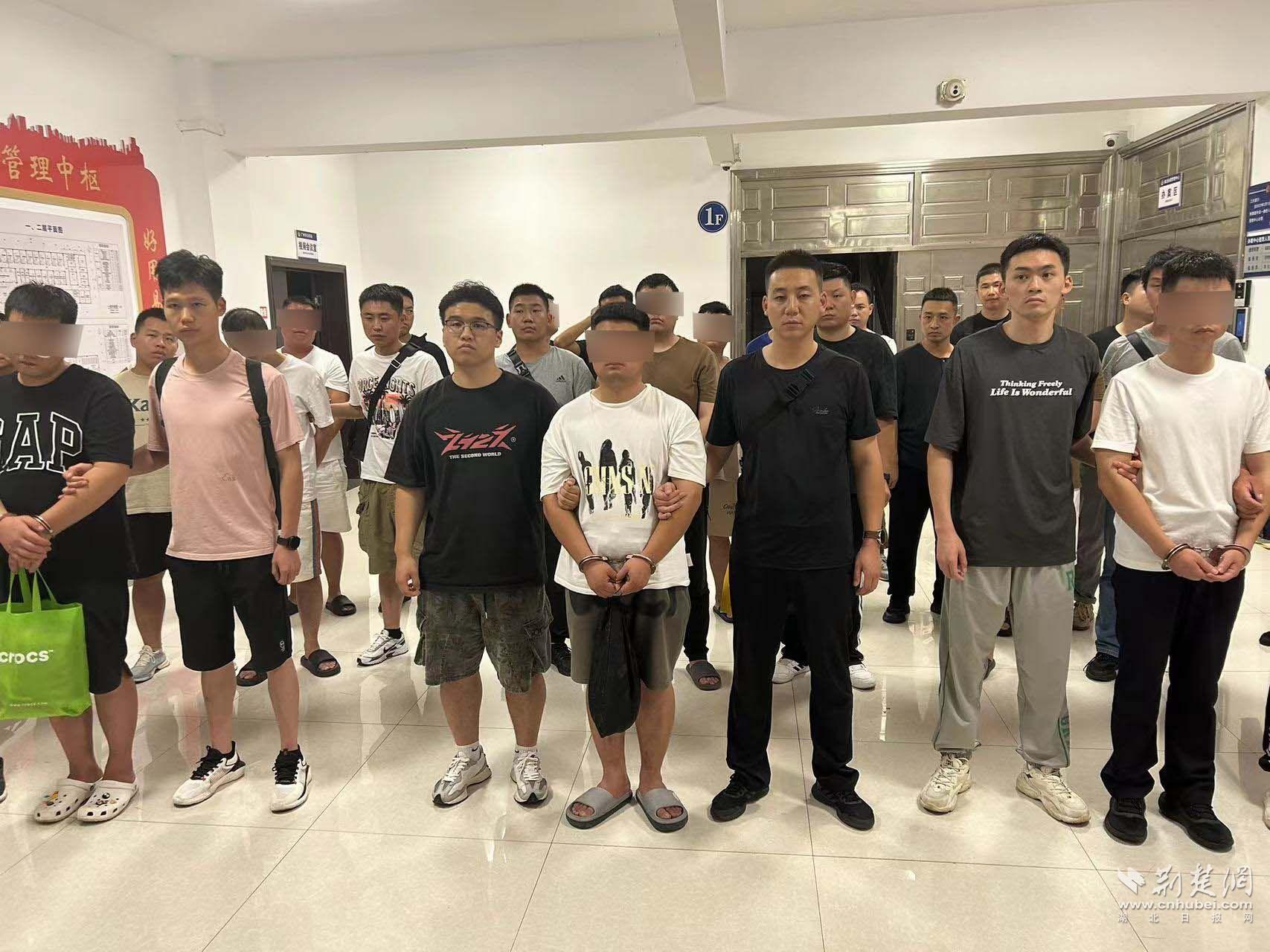 7月27日,由40余名警力组成的16个抓捕小组同时行动,在广水市抓获犯罪嫌疑人17人、现场扣押现金50余万元,手机、电脑等设备30余部,冻结资金20余万元和价值30万元的虚拟币账号。