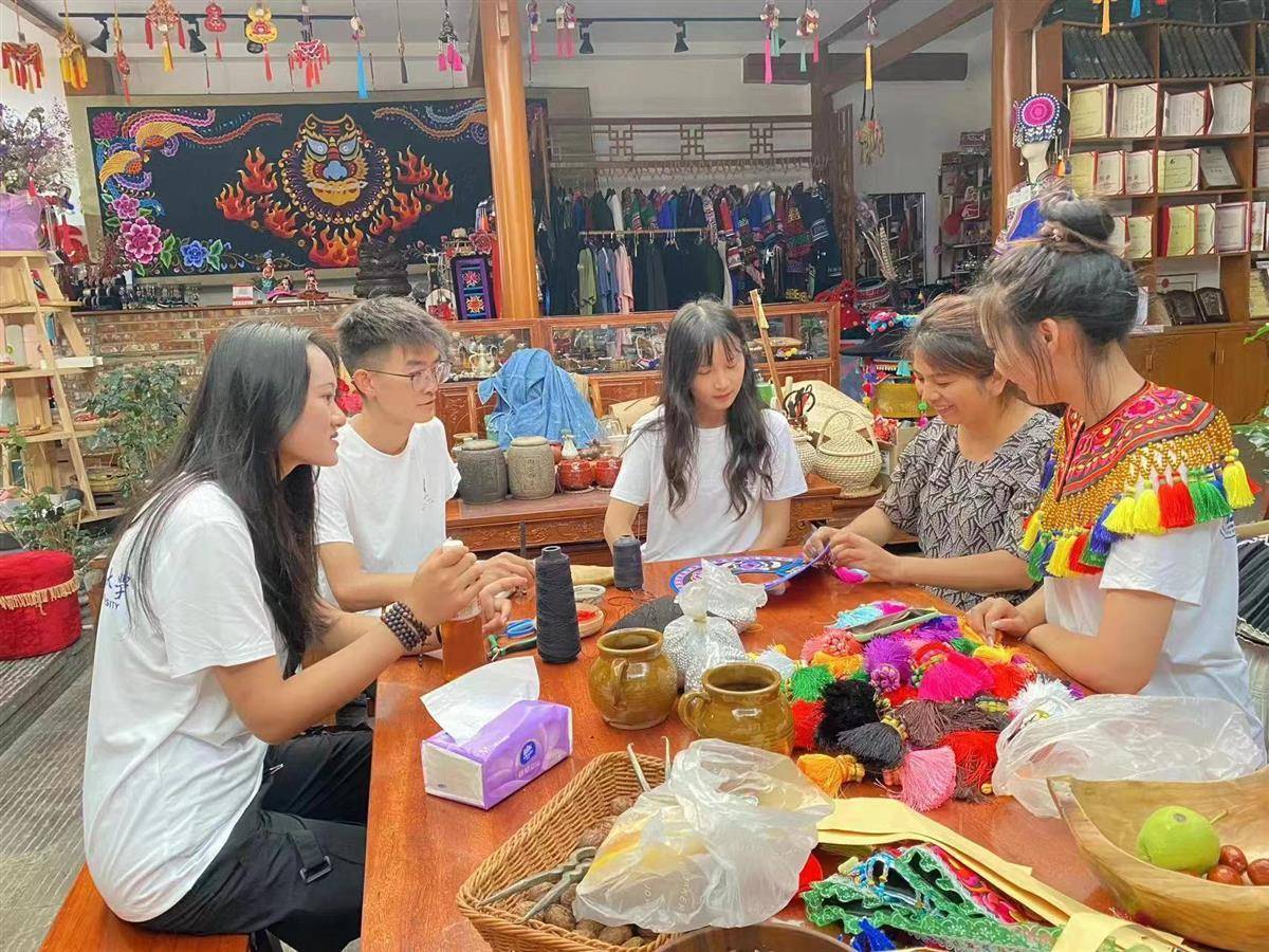 据悉,楚雄彝绣拥有1700多年的传承历史,是中华大地璀璨夺目的文化瑰宝,也是传承楚雄彝族文化最生动的载体之一,把彝绣产业发展好,把彝族文化传播好,是一件惠农惠民的好事,是一件促进乡村全面振兴的实事。8月4日,调研团队通过参观当地的彝绣文化馆以及走访当地的文创小店,了解销售情况和运营渠道以及行业痛点。8月5日,调研团队来到李长征彝绣技能大师工作室进行刺绣的学习,在传承人的教学下团队成员完成了具有团队特色的刺绣挂件。