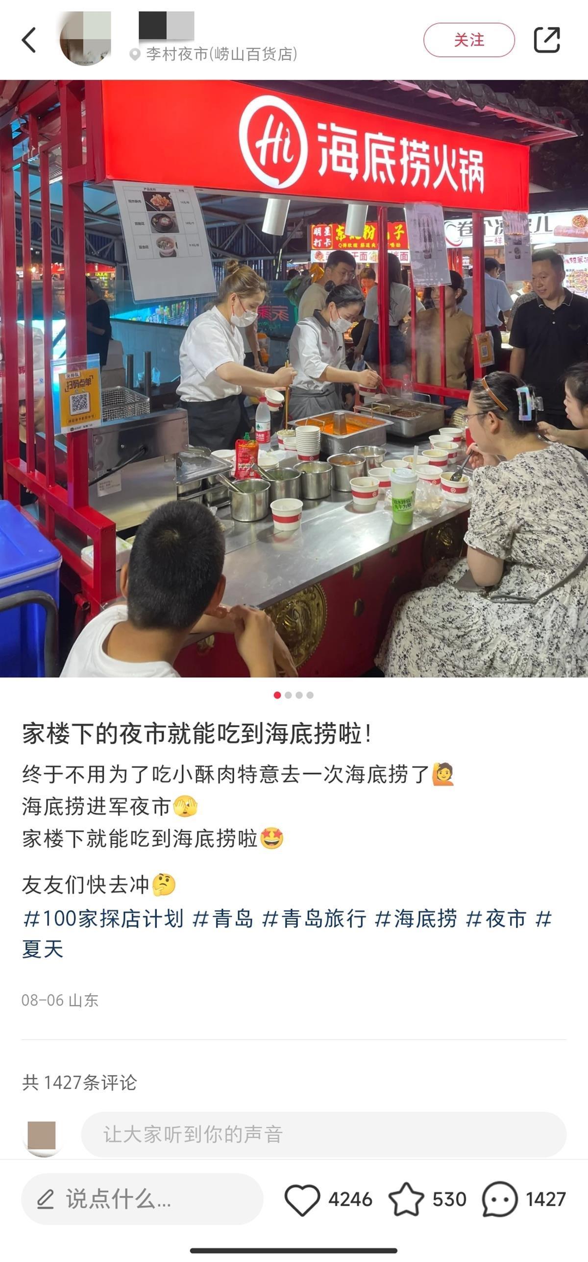 海底捞山东某夜市摊位 (图片来源:网友发布截图)