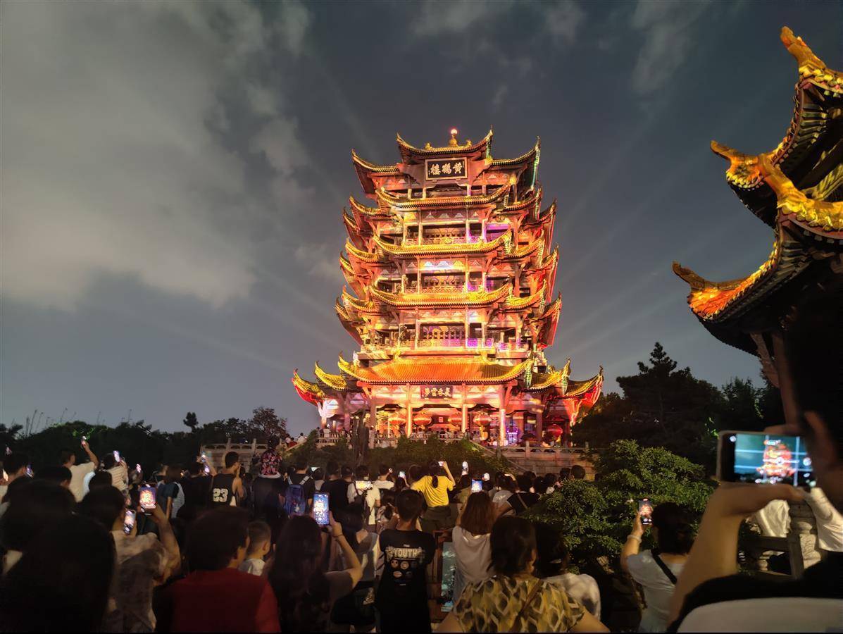 8月15日晚,“青春同心共‘荆’彩——知行湖北”香港大中学生研学实践交流营来到黄鹤楼,鸟瞰江城绝美夜景、观赏绚丽灯光秀。