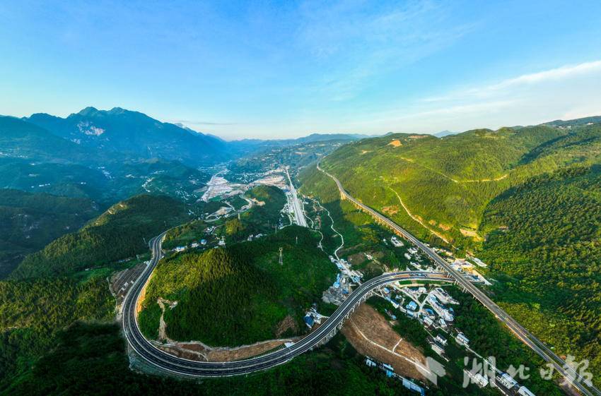 湖北日报报客户端讯(通讯员范宏霞、吴以红)8月16日,348国道巴东县城至高铁站快速通道正式通车,该快速通道起于巴东长江大桥北岸官渡口柚子树坪,止于平阳坝郑渝高铁巴东站站前广场,穿越绵绵群山,与村庄田园相映成趣,构成一幅大美公路风景画。
