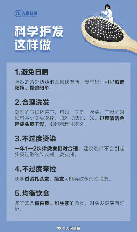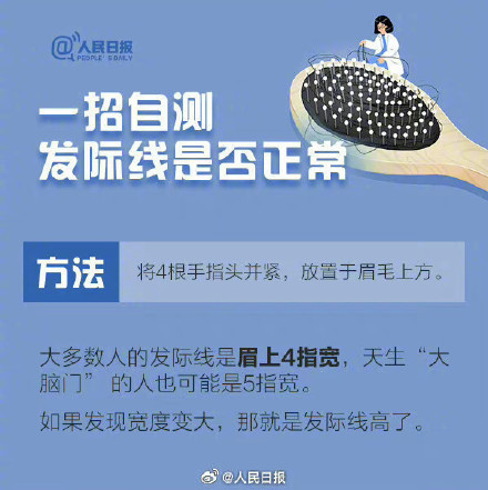 今天是全国护发日,一起来守护我们的发际线吧!①正常发际线通常为眉上4指宽;②熬夜、过量饮酒、频繁烫染、压力大是年轻人脱发的四个重要原因;③盲目用生姜黑芝麻丸或加重脱发……了解“头顶大事”守住发际线,一起科学护发!(人民日报)