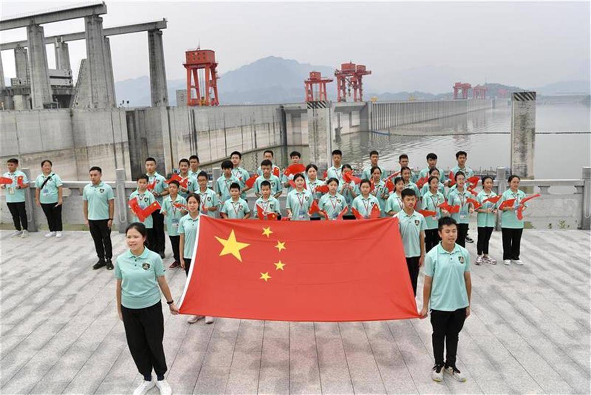 湖北日报讯(记者曹雯、李溪)“起来!不愿做奴隶的人们!把我们的血肉筑成我们新的长城!”8月19日上午,“爱我中华”香港青少年军精英湖北参观交流团在三峡大坝185观景平台举行致敬祖国仪式,大家齐唱国歌,向国旗敬礼。