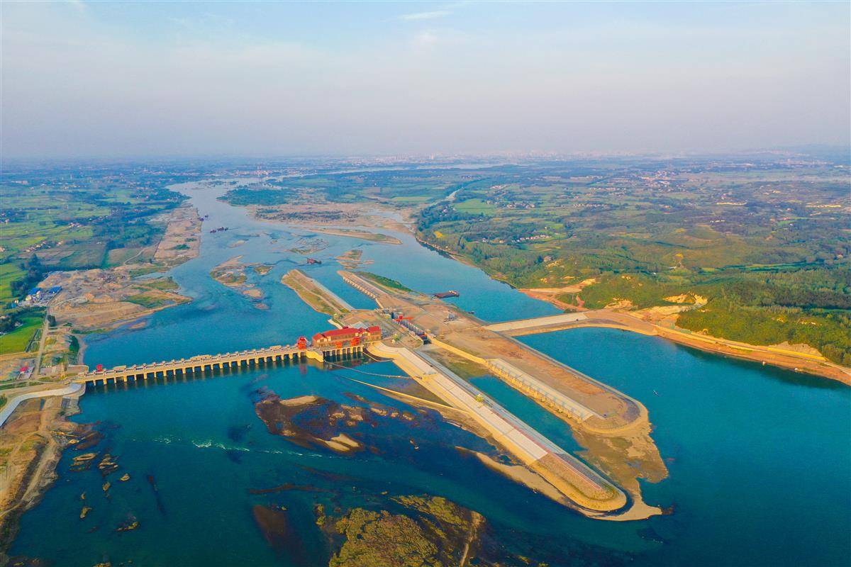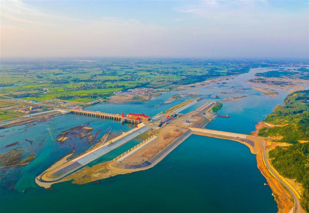 8月17日,进入建设最后冲刺阶段的汉江新集水电站,首台机组将于本月底下月初并网发电。该工程的实施,将改善襄阳汉江河道生态环境,库区周边万亩农田可实现自流灌溉,千吨级货轮也将顺流而下直达江海。(湖北日报全媒记者 田悦 通讯员 谢勇 张沛 摄)