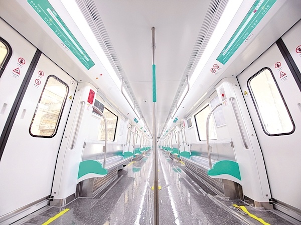 武汉地铁股份公司车辆部副经理秦鸿波介绍,19号线列车为A型车,4动2拖,6辆编组。列车最高运行速度120公里/小时。作为武汉市轨道交通运行速度最高的列车,19号线列车空调机组采用变频涡旋压缩机,实现了车内压力舒适性控制,确保乘客的舒适性。同时,客室车门和司机室侧门在地铁车辆电动塞拉门的基础上,增加了车门气密性方案,采用整体式焊接密封框,增加门板厚度。此外,设置气动辅助锁,并对车门密封胶条进行了增强,能将车辆通过隧道时或两车会车时产生的压力波动对车内的影响降至最小,有效减少、舒缓气压变化致人耳鸣等不适症状。