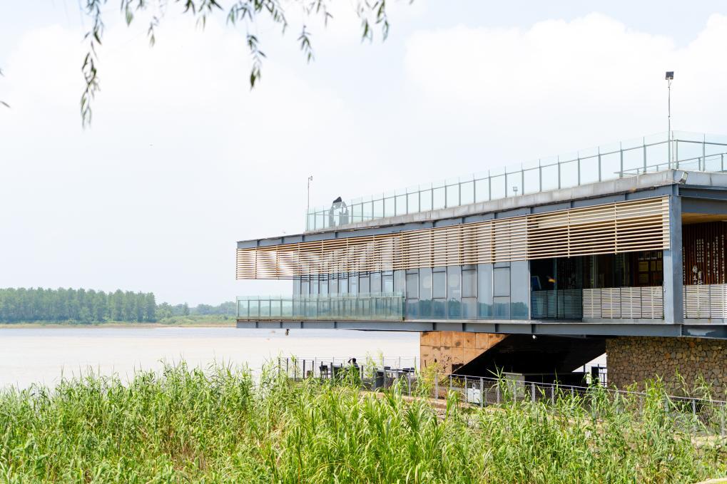 作为以有色金属冶炼兴盛的工业城市,铜陵在绿色转型的过程中不断加深对老工业区的探索与开发。2012年11月,铜陵市正式启动实施滨江生态岸线整治工作,总计投入约4.8亿元,最终建成岸线总长6.3公里、总面积100余万平方米的滨江生态风光带,而“码头书屋”正是改造工程中的一大亮点。