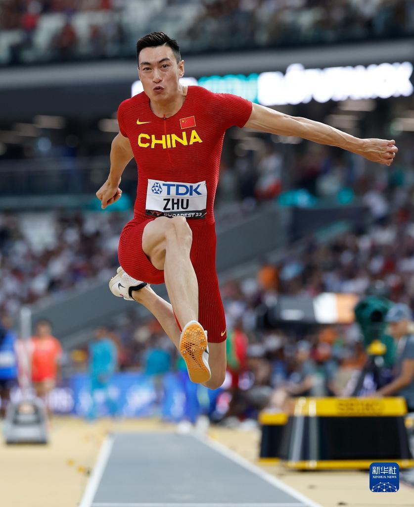 8月19日,中国选手朱亚明在比赛中。最终朱亚明以17米14的成绩位列资格赛第二名,晋级决赛。