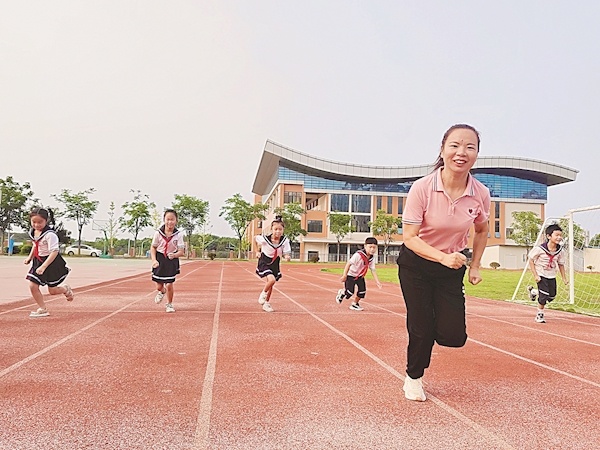 谢姣带学生上体育课 受访者供图