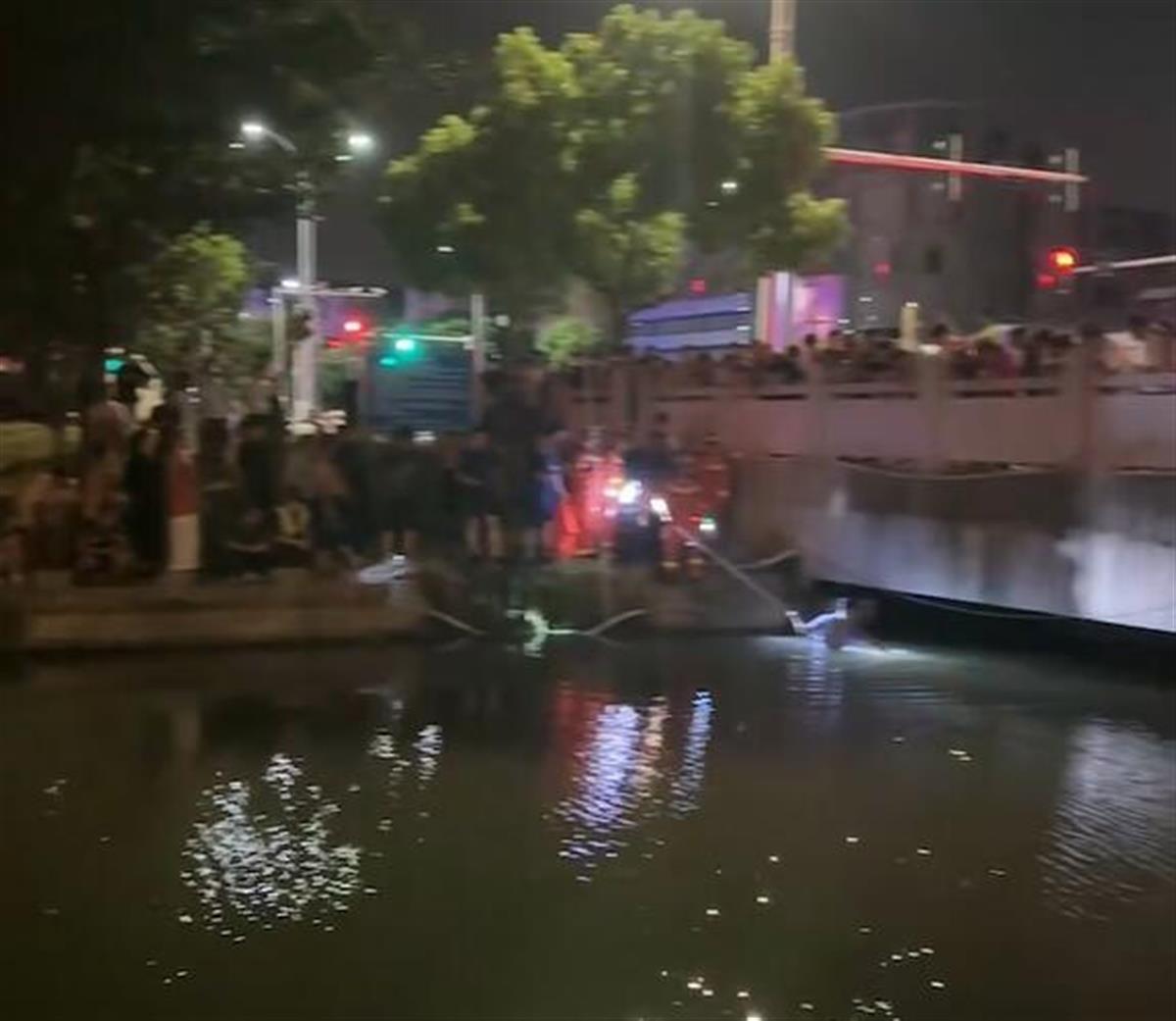现场视频显示,夜晚的河边有众多居民在围观,可见多名救援人员正在河中进行打捞,河边的马路上还停着消防车辆,警灯在不停闪烁。视频发布者配文称:“一家四口跳河。”