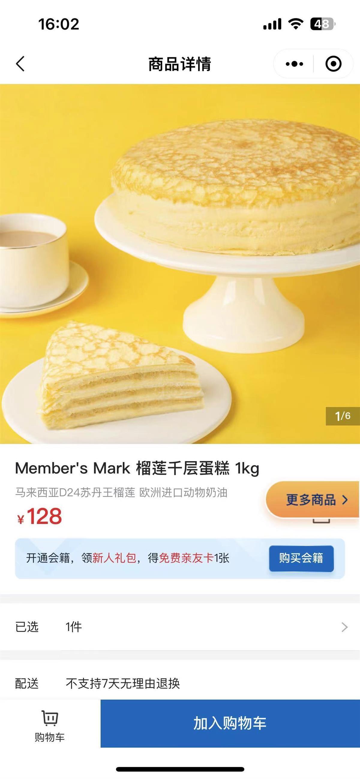 不过,截至记者发稿,武汉山姆方面尚未跟进,目前1千克榴莲千层蛋糕的价格仍为128元。