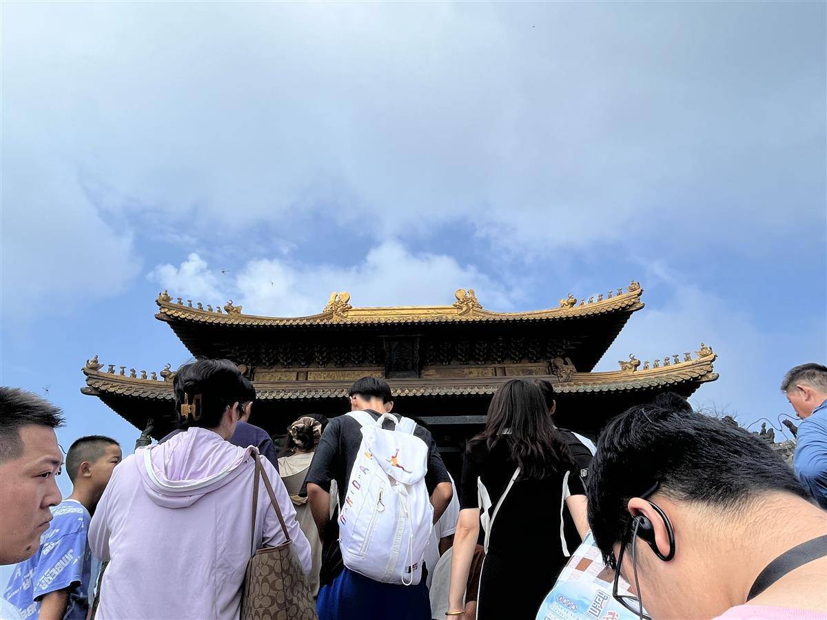 随后,研学团成员们乘缆车登上武当山金顶,探访太和宫风貌。太和宫位于武当主峰天柱峰最高点,其依居天险、随山就势的山色奇景让研学团成员们大饱眼福,纷纷情不自禁拿出手机、相机等设备记录下湖北的美好风光。
