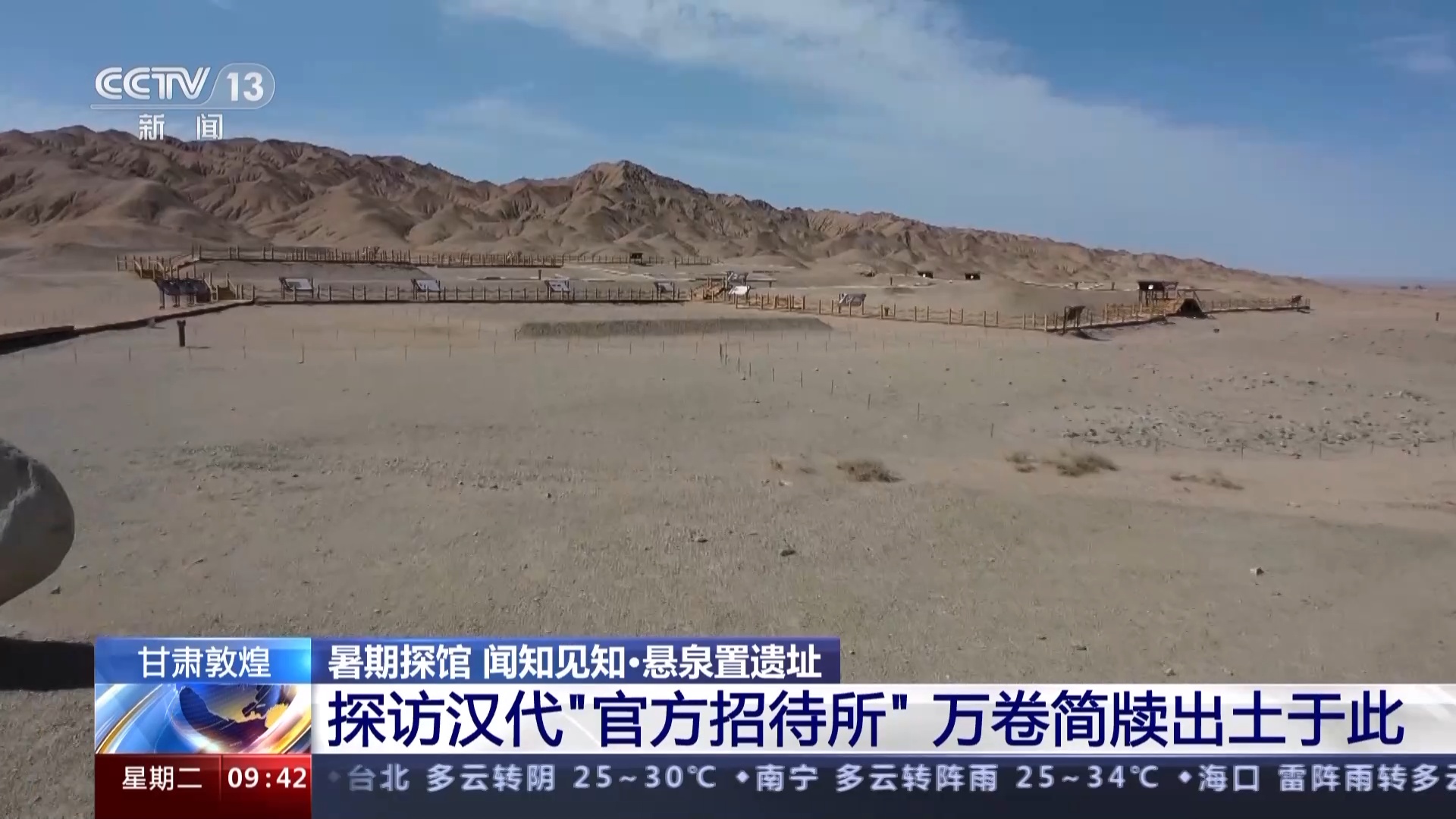 总台记者 马丽:这里是敦煌市以东80公里瓜敦公路南侧的山坡上,我脚下就是悬泉置遗址所在地。据古文献记,在唐代,从长安到敦煌,沿线有80余处驿站,其中有文献记载的有名称的40余处,而已经发现并考古发掘的仅悬泉置一处。