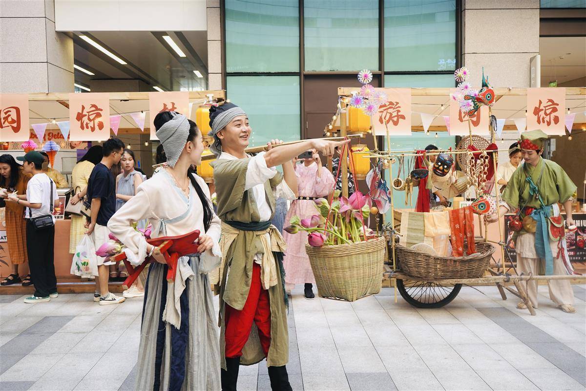8月22日晚,武商梦时代东街的“夏夜趣市集”换装为南宋乞巧节的街市场景,数位KOL扮演民间货郎、世家公子小姐,共同演绎七夕街市众生相,感受传统中式美学。