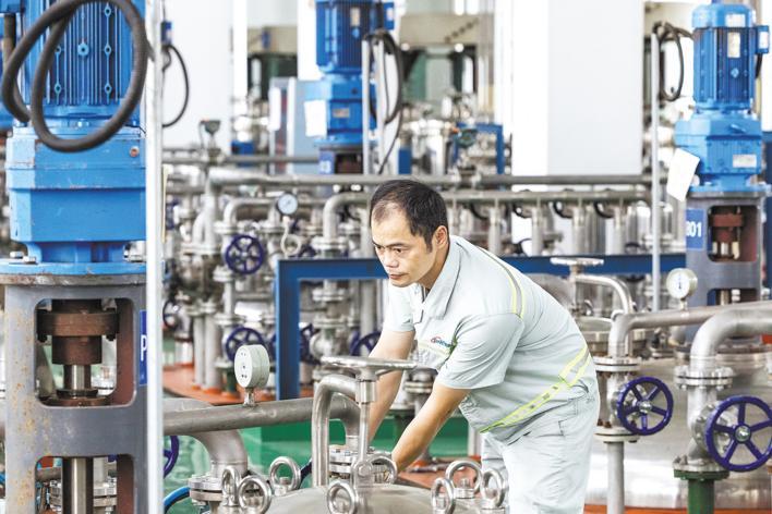 8月22日,在武汉新华扬生产基地发酵车间,工作人员正在调试设备。今年5月,武汉新华扬生物股份有限公司获批农业农村部微生物酶资源开发与生态农业重点实验室。
