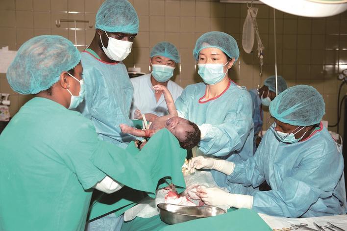 援莱妇产科印贤琴医生为孕妇实施剖宫产手术。