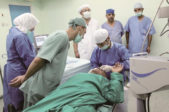 2011年10月,中国在阿国光明行眼科专家为阿白内障患者做手术。