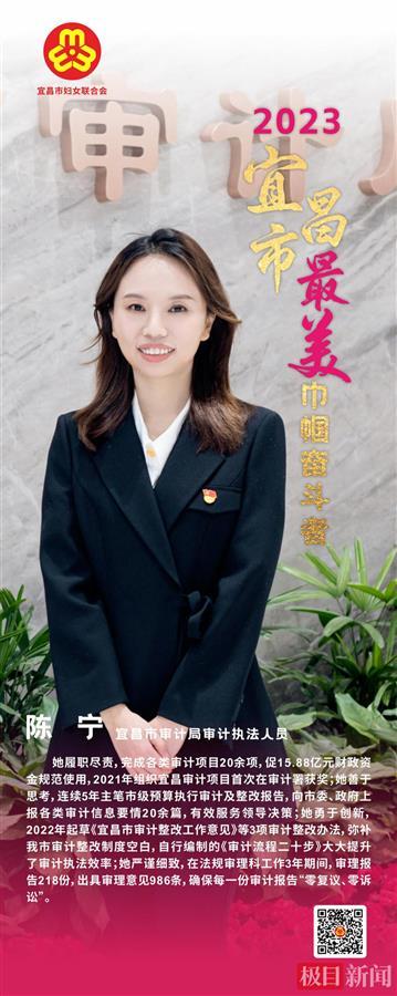 从审14年来,她凭着对审计事业的无限热爱和执着追求,兢兢业业,刻苦钻研,被聘为湖北省审计系统法规审理专家库成员。她看上去文静柔弱,却是攻坚克难的能手,她就是湖北省宜昌市审计局财政审计科科长陈宁。今年3月,在宜昌市委宣传部、市委文明办、市妇联联合开展的纪念“三八”国际妇女节暨“宜昌市最美巾帼奋斗者”评选活动中,陈宁荣获了“2023年宜昌市最美巾帼奋斗者”称号。