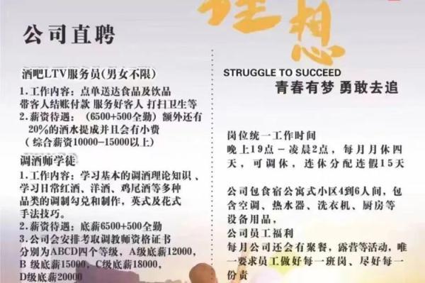 原来,他们都是在某网络招聘平台上看到一则餐饮公司高薪招聘酒吧调酒师的招聘广告,底薪6000~7000元,若取得相应资格证书,月薪最高可达2万元。
