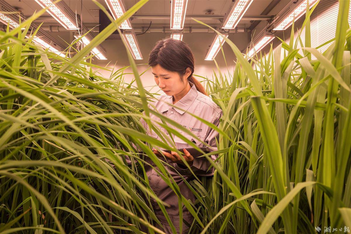 8月23日,在武汉国家农创中心核心功能区的中国种子生命科学技术中心(简称“中种科技中心”),温室科学家姬晨晨和同事朱红梅在室内培养室内观察水稻秧苗生长情况。近年来,由在汉央企中种科技中心选育研发的优质稻品种“荃优607”在长江中下游稻区广泛种植,上市3年来累计推广超400万亩,以其耐高温低温、抗伏倒、米质好等全能优势,受到广大种植户的欢迎。