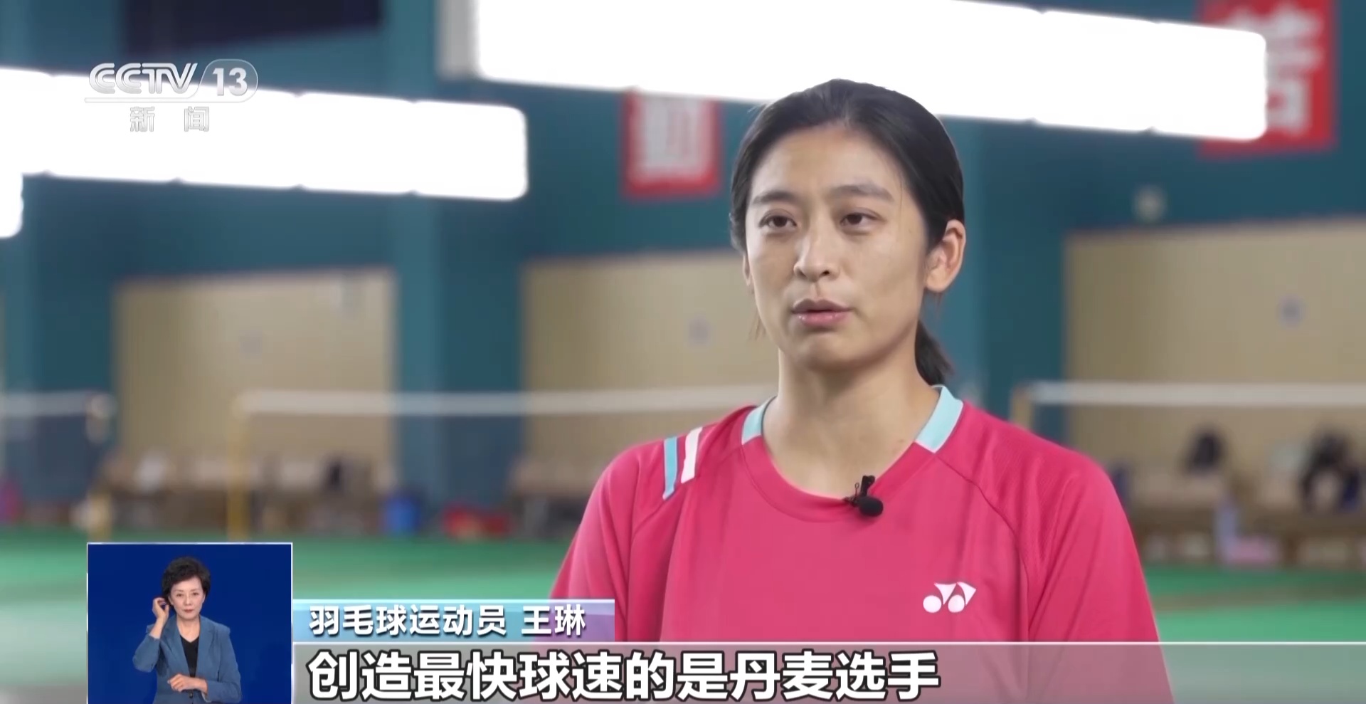 羽毛球运动员 王琳:目前在比赛当中创造最快球速的是丹麦选手,达到了每小时426公里。目前国内高铁一般能达到每小时300多公里,我们羽毛球运动员一拍杀球,可以跑得比高铁还快。