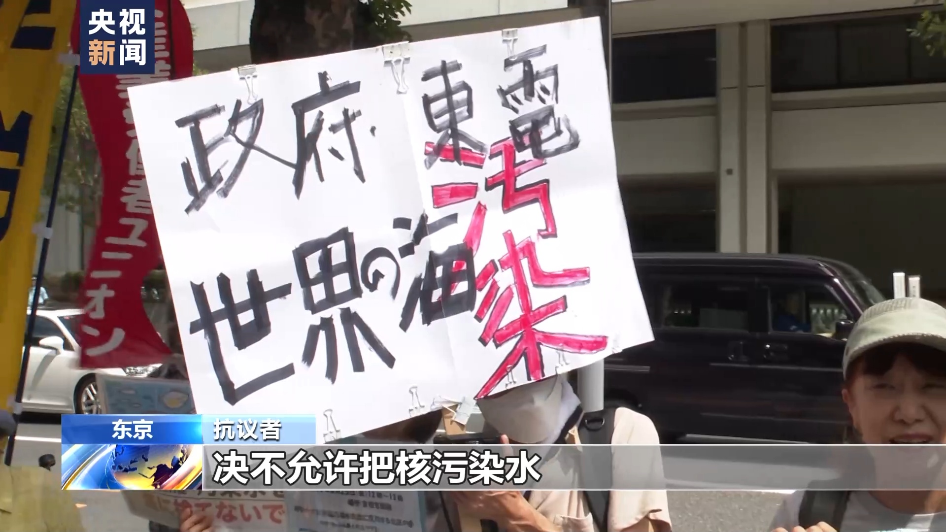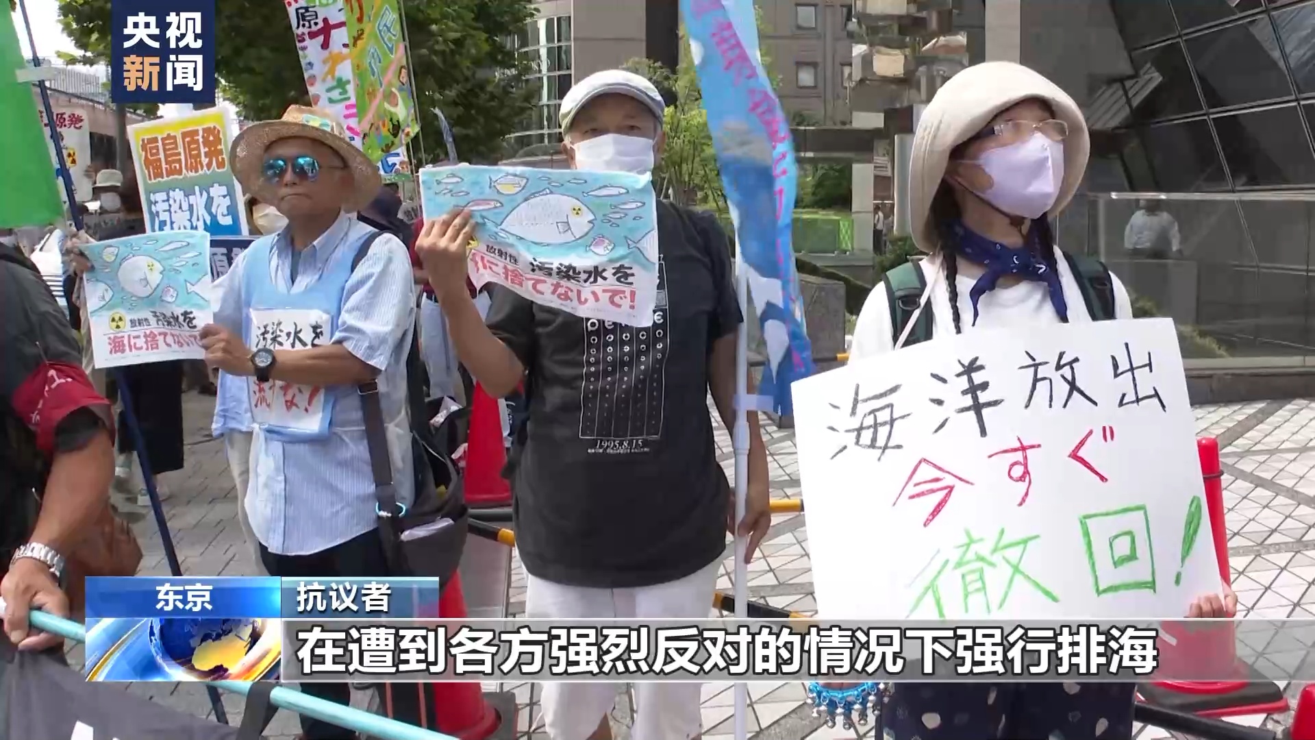 总台记者 李卫兵:我身后的建筑就是东京电力公司总部大楼。今天上午,来自日本各地上百名民众在东京电力公司前举行集会,他们打出“不要将放射性核污染水排入海洋”“不要污染海洋”等标语,反对福岛第一核电站核污染水排海。